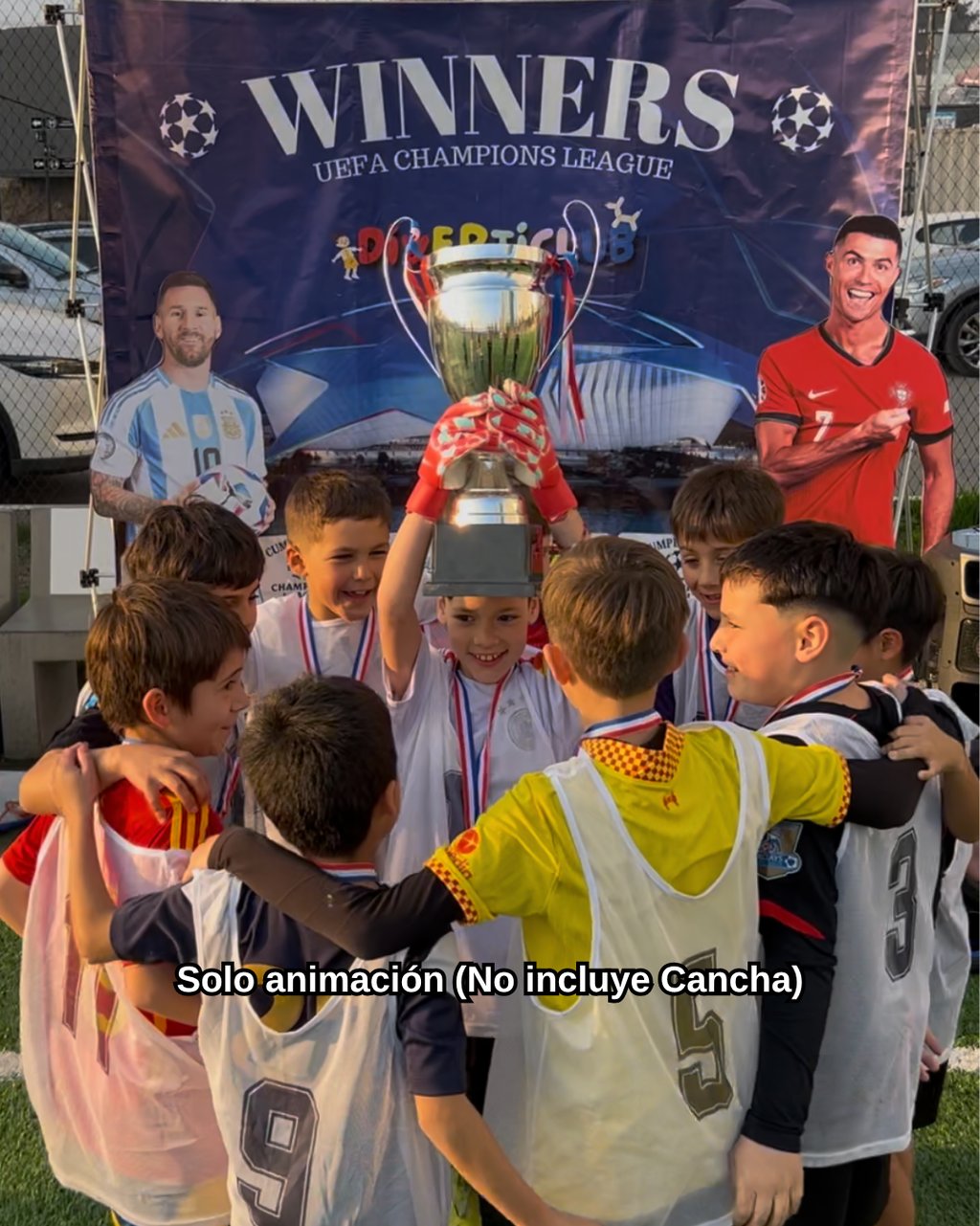 🎉 ¡El cumpleaños perfecto para fanáticos del fútbol! Nuestro Cumpleaños Champions convierte a los niños en verdaderos campeones: dinámicas, entrenamientos, penales y una gran final con copa, medallas, árbitros, petos y figuras de Messi o Cristiano. Una experiencia premium dirigida por profesores de educación física. 🏆⚽