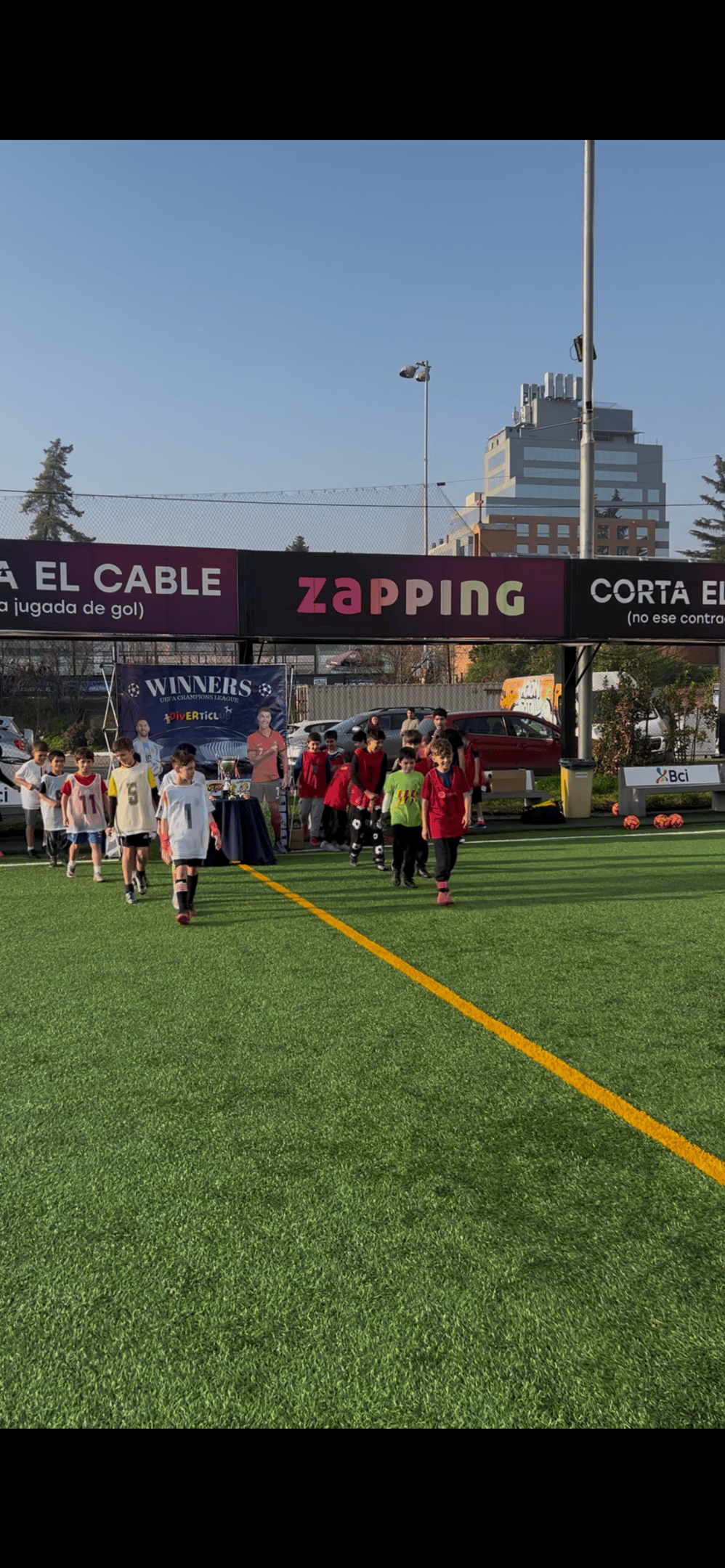 Un Cumpleaños único, mi hijo se sintio un verdarero jugador de fútbol, sobre todo con su premio y entrevista al final del partido.